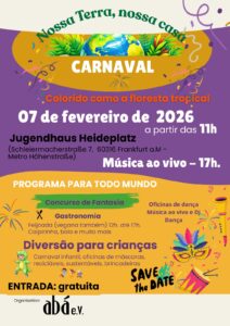 Am 07. Februar 2026 lädt Abá e.V. zu einem bunten, nachhaltigen und familienfreundlichen Karnevalsfest ins Jugendhaus Heideplatz in Frankfurt-Bornheim ein. Unter dem Motto „Bunt wie der Regenwald“ steht der Karneval ganz im Zeichen von Vielfalt, Gemeinschaft und Umweltbewusstsein.